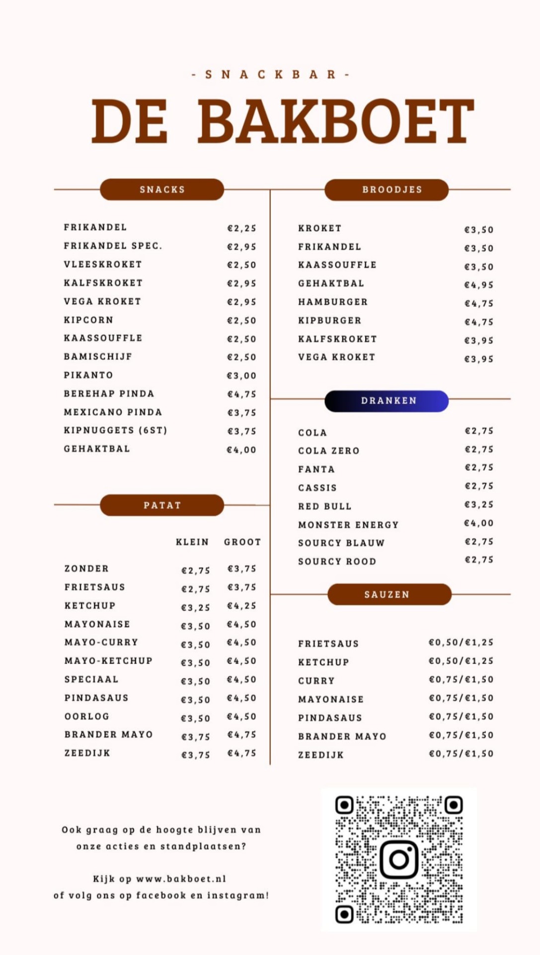 Bakboet menukaart
